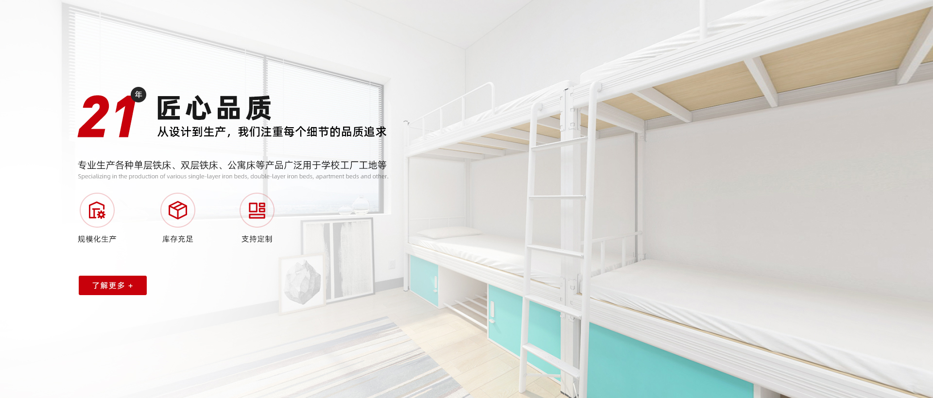冠迪五金-看得見的鐵床生產(chǎn)實力 現(xiàn)代化生產(chǎn)制造企業(yè),為超過1000企業(yè)單位提供公寓宿舍鐵床鐵柜整體解決方案